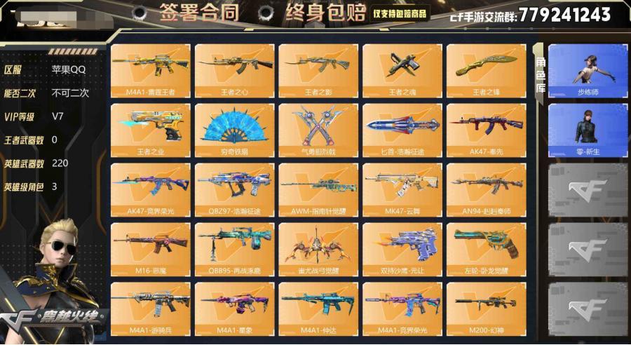 【CFMG722】VIP7/220V/炽芒蝶刃/KSG-孟获/巴雷特-毁灭/KSG-天使/蟒蛇-鼓龙/M4A1-机械迷城/王者之心/马来剑-毁灭/麒麟刺/AN94-赳赳秦师/擎天觉醒/AK47-猩红传说/双持沙鹰-元让/刘易斯-血月/9A91-天神/SCAR-幽暗骑士/王者之锋/匕首-浩瀚征途/M4A1-太白诗仙/左轮-卧龙觉醒/CZ75-策/巴雷特-极光/穷奇铁扇/81式光明之神/AK47-奉先